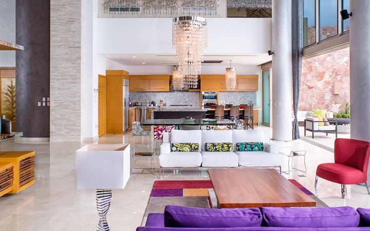 Chic contemporary design abounds in this stunning condominium that breaks the mold for luxury living. The Grand Penthouse flawlessly blends cutting edge style with elegant comfort. The magnificent high ceiling that towers over the opulent living room and gourmet kitchen, capped by a stunning palapa roof, provides a unique touch to this 6,222 sq. ft. Penthouse duplex.